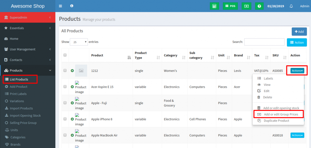 3. - Use the unit in Add/Edit Product. While adding/editing purchase/ sale you can see the dropdown for units. Select the desired unit and it will change the unit purchase/sales price accordingly.
