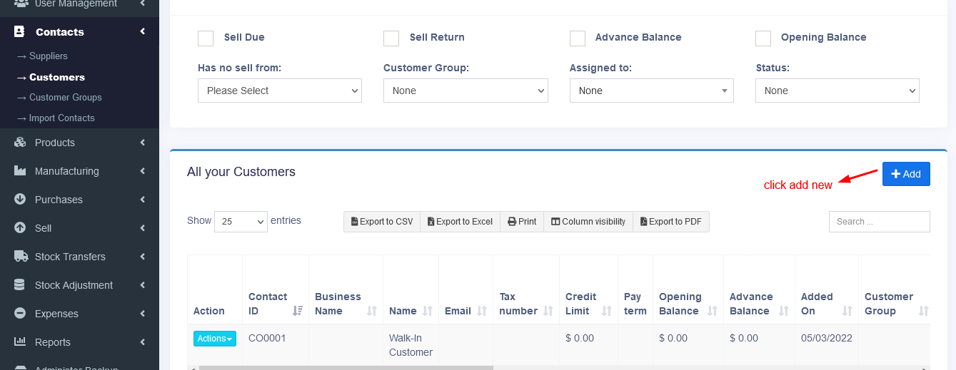 Step 1 Go to Contact ==> Customers ==> Add newSelect appropriate dashboard link for contacts