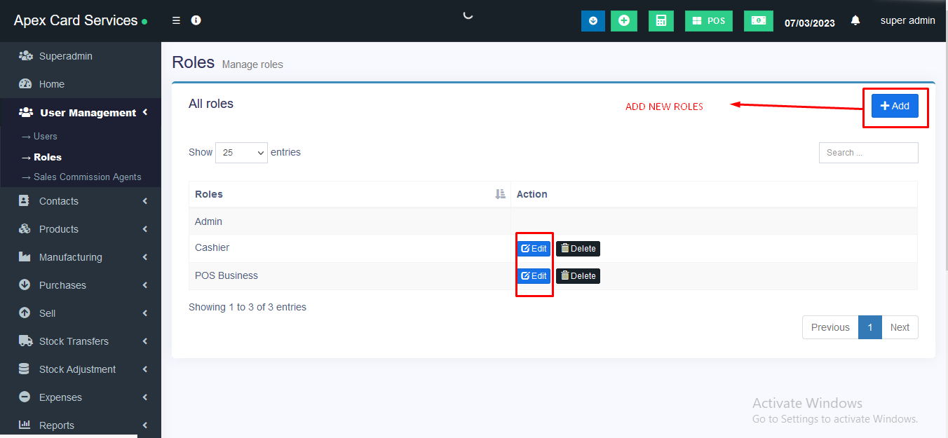 Step 1 - Every new business comes with some default roles – Admin & Cashier.