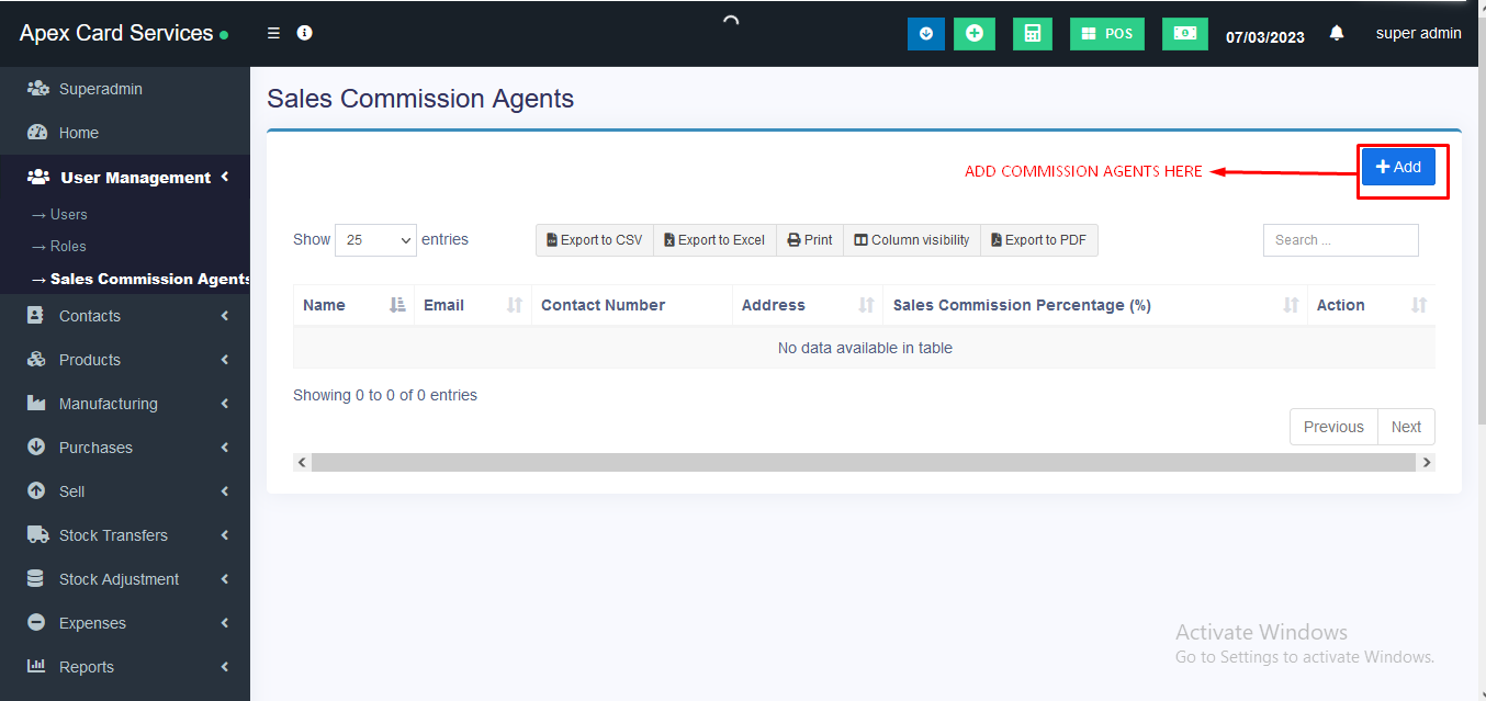 Step 1 Go to user Management-->Sales Commission Agents--->Add New