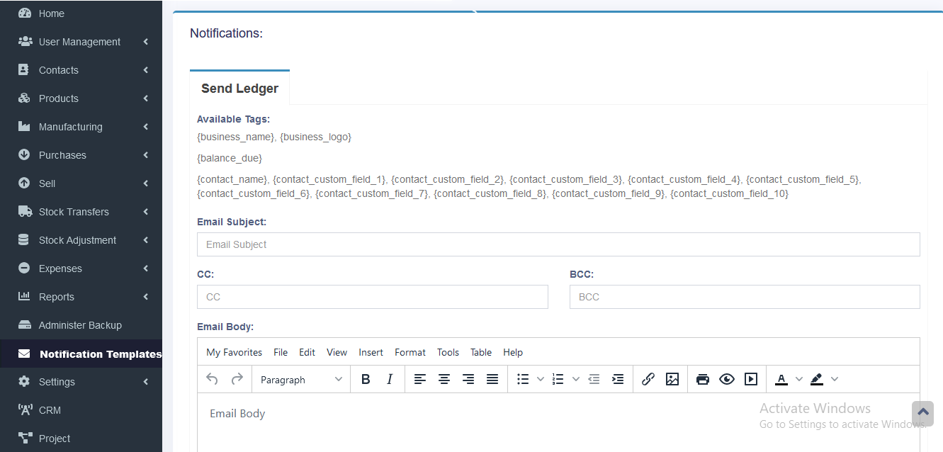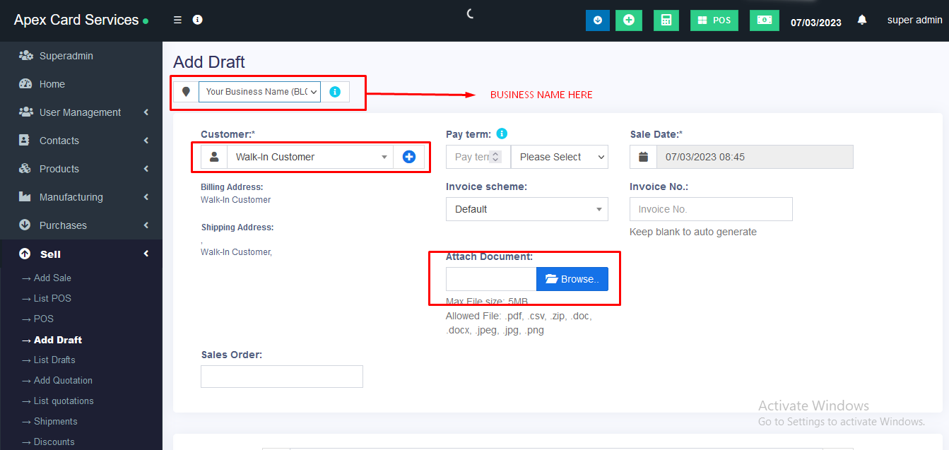 Your Business in the Apex POS System: Name of Business, Currency, Time, Logo, Stock Account, Tax Id, Products, Sale, Purchase, Payments, Email Setting, SMS, Rewards Plus More.
