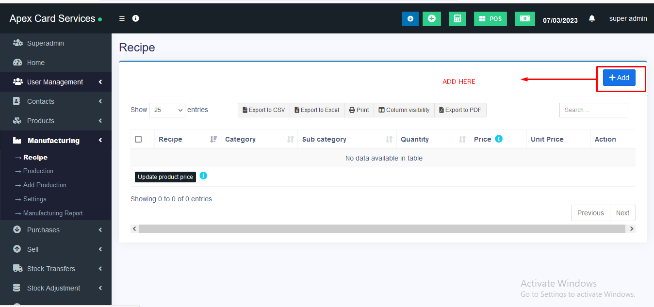 Different Products have different units. Apex Card Service POS allows you to add different units of products:
