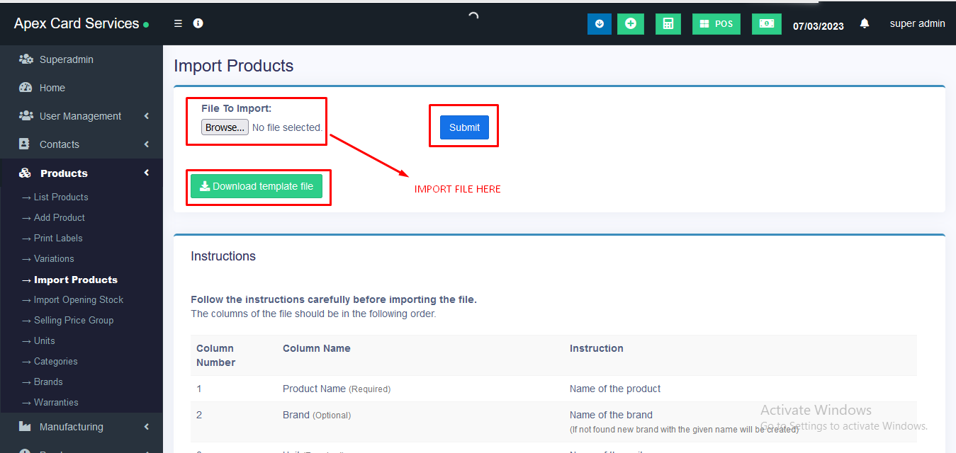Different Products have different units. Apex Card Service POS allows you to add different units of products: