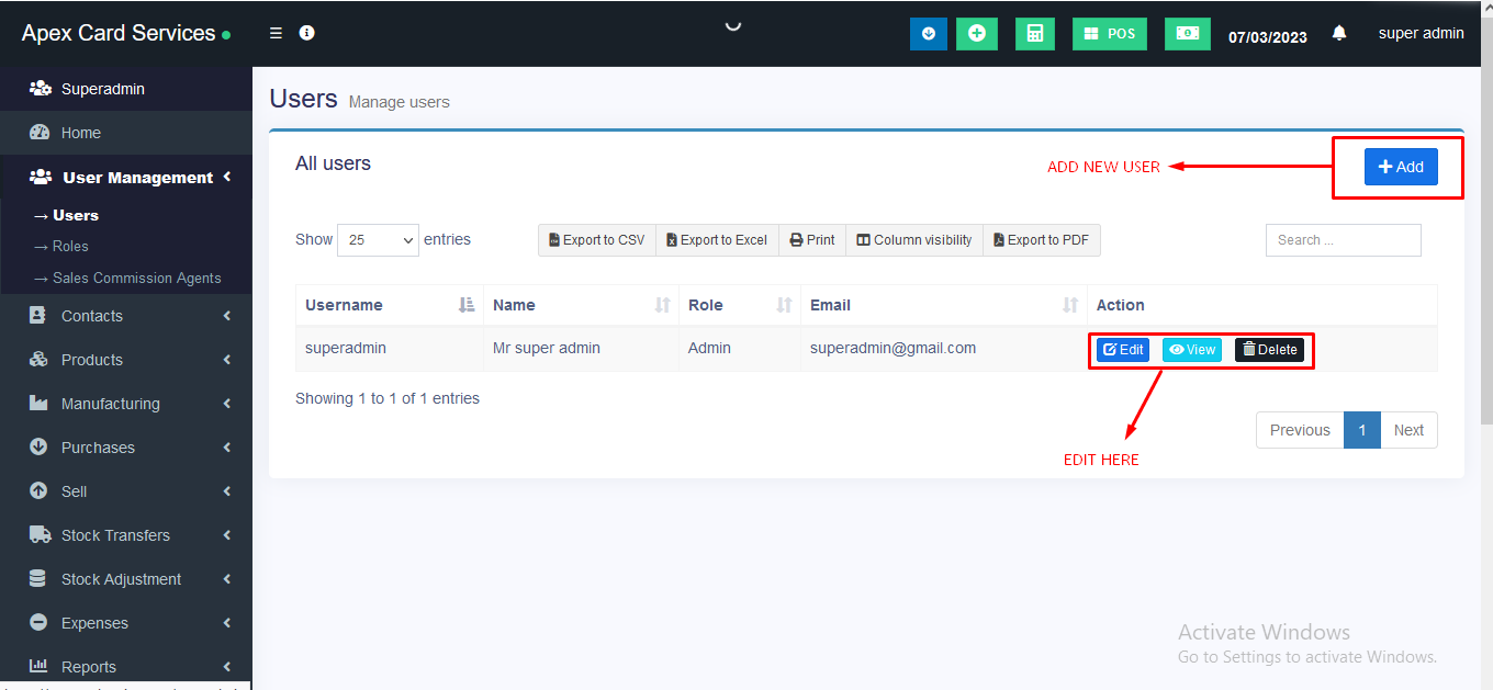 Step 1 Go to user Management-->Sales Commission Agents--->Add New