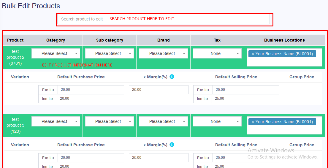 Step 4 - Also, in the bulk edit screen you can add any other products to edit them.