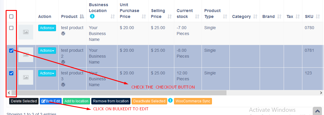 Step 2 - Select the products you want to edit by clicking on the checkbox present in each product row.